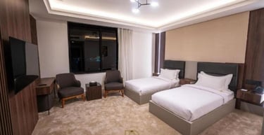 غرفة صغيرة بسرير مزدوج او سريرين فرديين