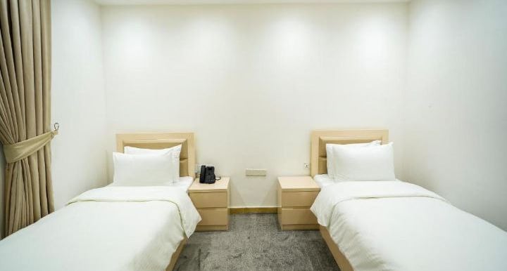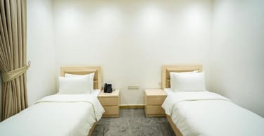 غرفة صغيرة بسرير مزدوج او سريرين فرديين